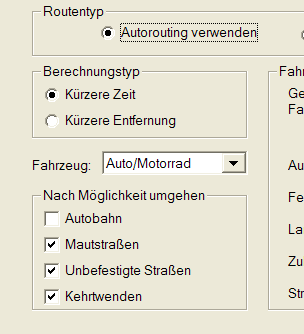 Einfaches Beispiel: In MapSource werden Autobahnen vermieden, im Gerät nicht. Dies kann zu völlig anderen Routen führen, wenn das Gerät die MapSource-Route neu berechnet.