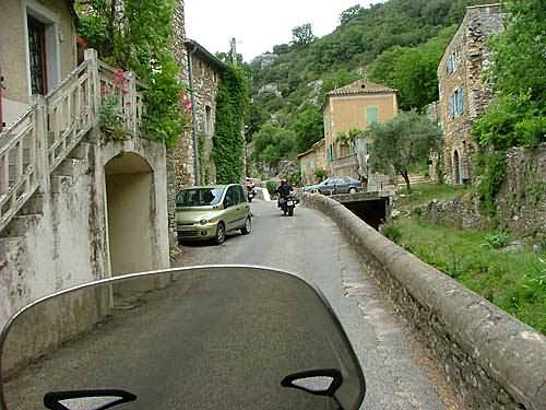 Erst fahren wir das Gebiet nordöstlich, quasi oberhalb der Ardeche ab, um ja nichts zu verpassen. In Saint-Remèze gibt es gegen 12.45 Uhr den ersten Halt und einen schnellen Kaffee. An Felder vorbei und durch hübsche Dörfer führt der Weg weiter über Bidon nach Saint-Marcel-D'Ardeche und weiter auf die Hauptstrecke nach Saint-Just.