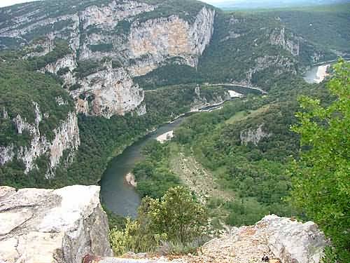 Aber bereits nach kurzer Fahrt auf einer sehr schönen und gut ausgebauten Strecke mit vielen Kurven befinden wir uns weit oberhalb der Ardeche und genießen an einem Aussichtstürmchen tolle Blicke hinunter in die Schlucht. |