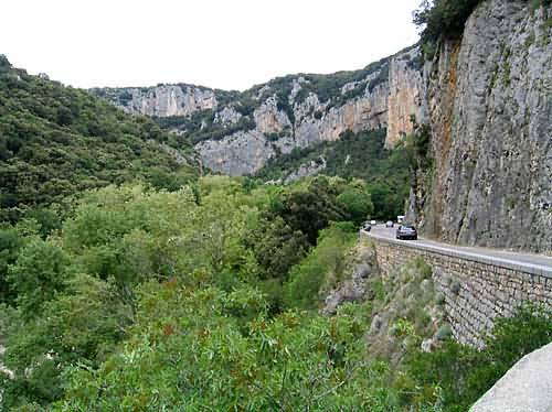 Beim Einfahren in das Tal bei Saint-Martin zeigt sich dieses noch recht unscheinbar. Nur an der linken Seite türmen sich Felswände empor.