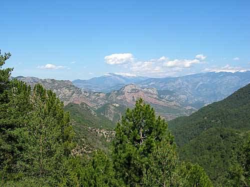 Hin und wieder lugt durch das dichte Geäst ein weißer Gipfel. Wir steuern auf den ersten Pyrenäen-Pass zu. |