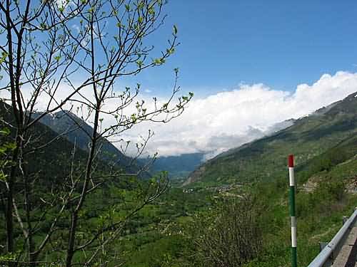 Auf dem Col de Aspin ist oberhalb von 450m alles im Nebel. Das Thermometer zeigt 10 Grad. Ein paar Hinweistafeln weisen auf einige gesperrte Pässe hin. Glücklicherweise keiner, den wir fahren wollen. In Bagnéres-de-Luchon fahren wir ein geraumes Stück auf der D618 in Richtung Bossòst, bis eine Tafel auf eine Sperrung des Col Du Portillion hinweist. Dadurch wird eine längere Umleitung über Cierp-Gaud erforderlich, die uns fast eine Stunde kostet. |