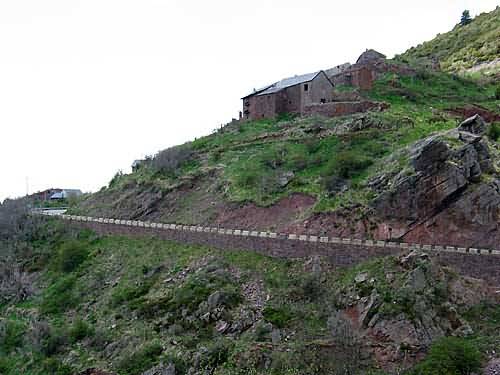 Die N-260 ist sehr schön zu fahren: die Kurven sind nicht zu eng und lassen sich zügig fahren. Vor Rubiò auf der Passhöhe liegt überall braunrote Erde (Foto). Wahrscheinlich heißt auch der Bach deshalb Rio Rubiò. |