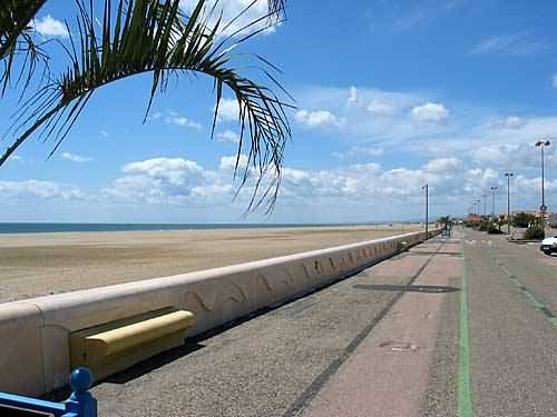 Nach ein paar Fotos geht's hinab nach Narbonne-Plage. Das Wasser sieht man von der D168 nicht, also biegen wir rechts ab und erreichen ein paar Meter weiter die Strandpromenade. Vor uns liegt ein riesiger verwaister Sandstrand. Entweder ist um die Jahreszeit nichts los oder der starke Wind ist zu kalt zum Baden.